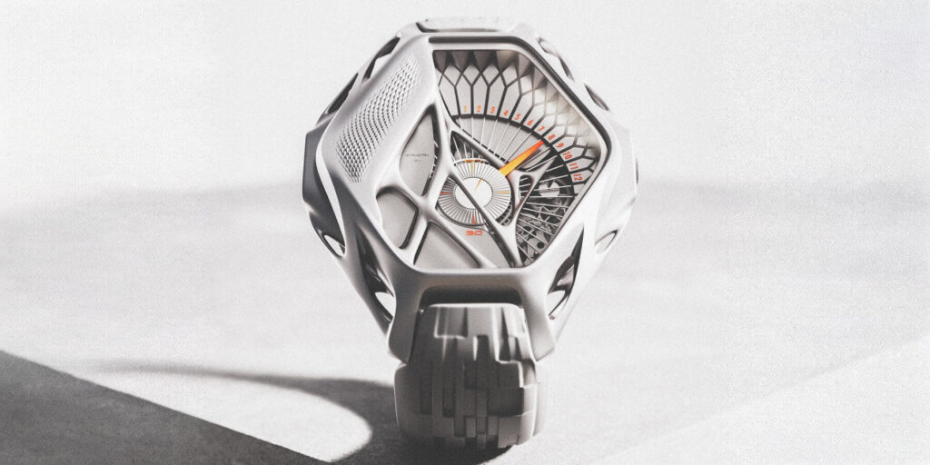 “Por el momento, es solo una propuesta de diseño destinada a ser expuesta en la feria Dubai Watch Week, pero promete ser el siguiente paso en la industria relojera para generar formas imposibles.”